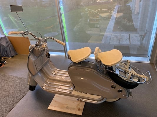 Die Lambretta A ist nicht nur sehr selten sondern auch perfekt restauriert und in tadellosem Zustand sowie mit Veteranen-Eintrag im Ausweis.
